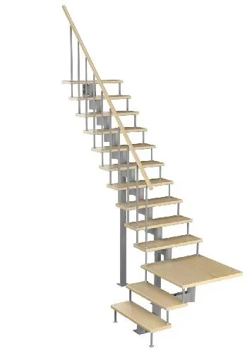 Компактная лестница, легко поддается доработке по высоте на объекте. Удобный поручень по второму маршу обеспечивает безопасность и законченный эстетический вид. Монтаж осуществляется силами двух человек на объекте по указаниям, приведенным в паспорте на лестницу.