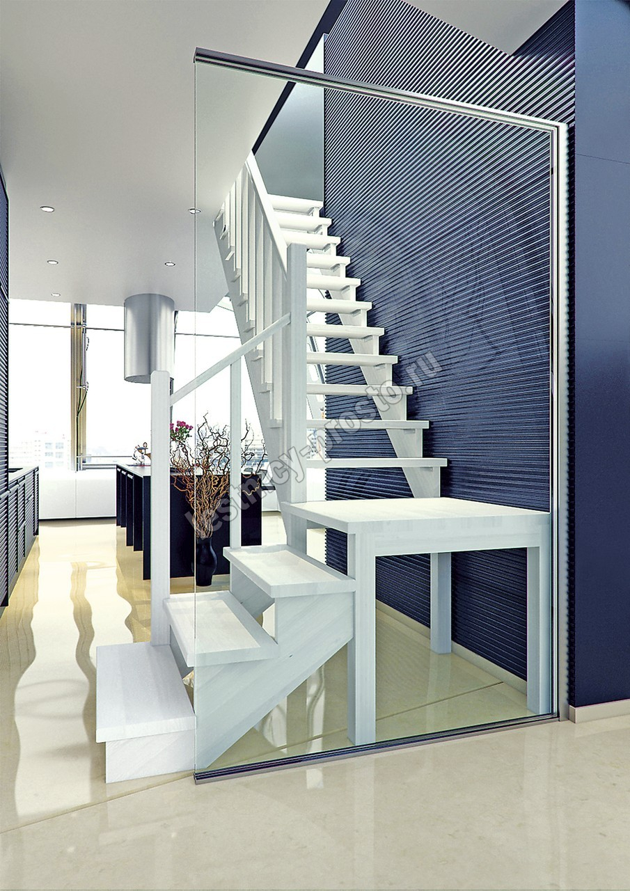 Универсальная лестница, имеющая в основе своей конструкции наклонную опорную балку. Легко впишется в любой интерьер, даже на неровном полу. Место под площадкой можно закрыть и использовать для хранения различных предметов. Монтаж осуществляется силами двух человек на объекте по указаниям, приведенным в паспорте на лестницу.