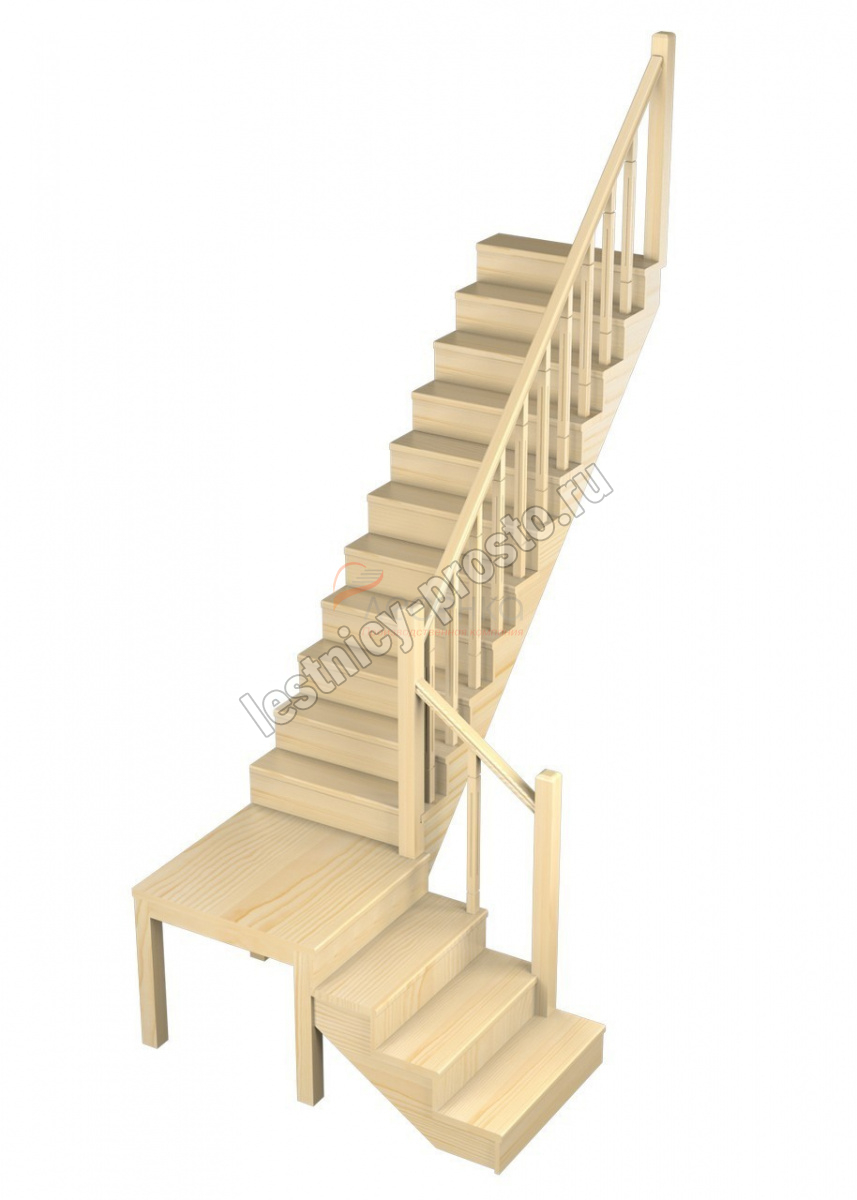 Деревянная межэтажная лестница ЛЕС-08, Сосна с подступенкой