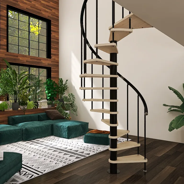 Удобная лестница на косоурах с поворотом на 90 градусов. Открытые ступени визуально облегчают конструкцию. Ограждения по всему маршу обеспечивают дополнительную безопасность и возможность декорирования. Монтаж осуществляется силами двух человек на объекте по указаниям, приведенным в паспорте на лестницу.