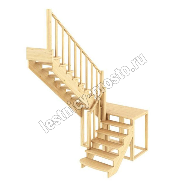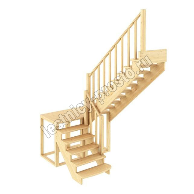 Ступени и поручень лестницы изготовлены из дуба, остальные элементы из сосны.