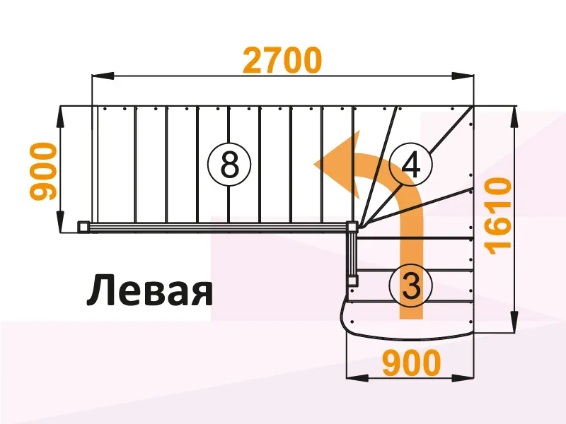 Лестница К-001М/4 с поворотом налево