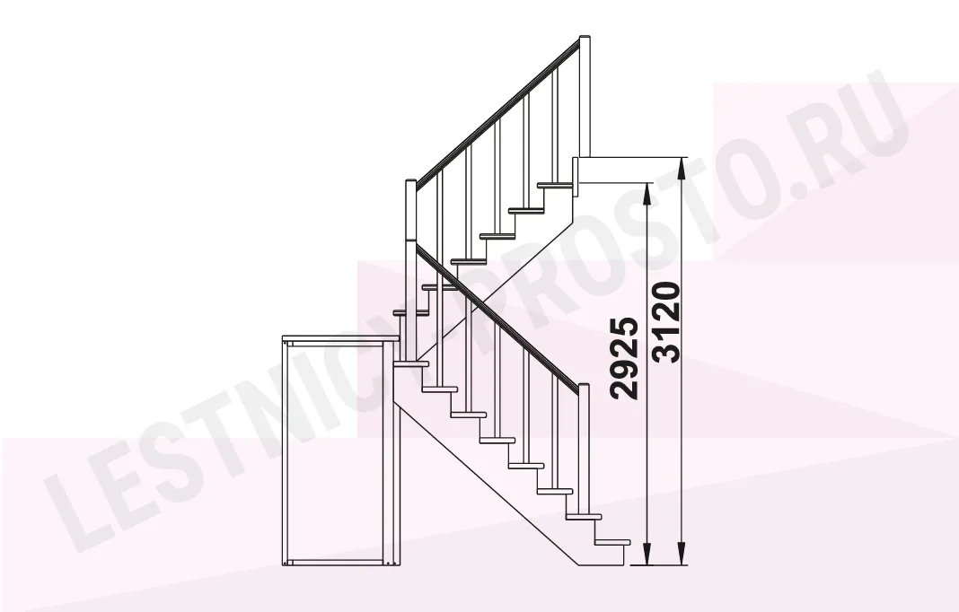 Базовый комплект включает в себя деревянные элементы лестницы и ограждения без какого-либо покрытия. Стандартные ограждения можно заменить любыми на ваш вкус (стоимость может измениться).