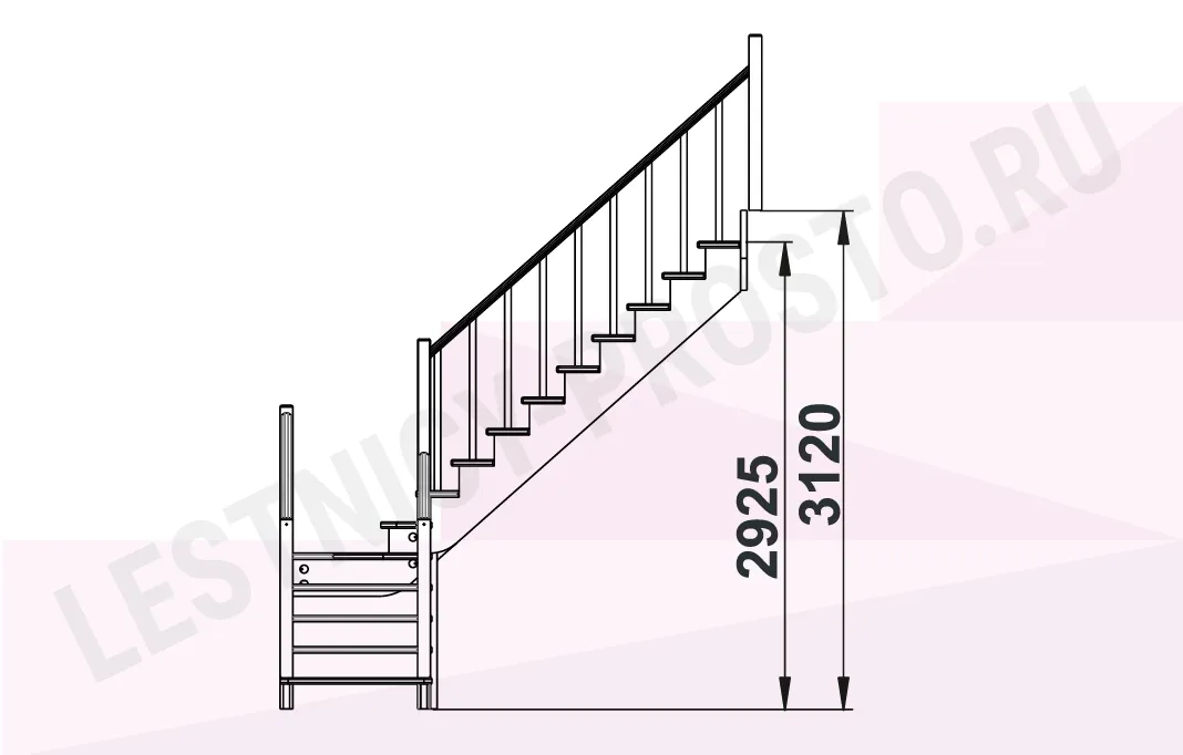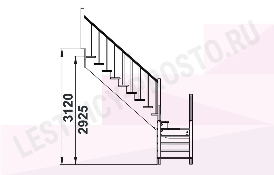 Базовый комплект включает в себя деревянные элементы лестницы и ограждения без какого-либо покрытия.