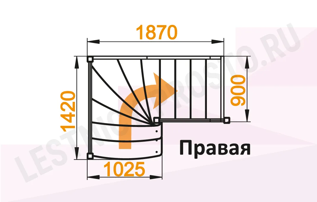 Схема лестницы ЛС-09М/1 с поворотом направо