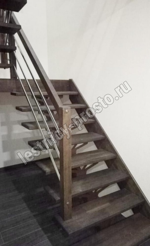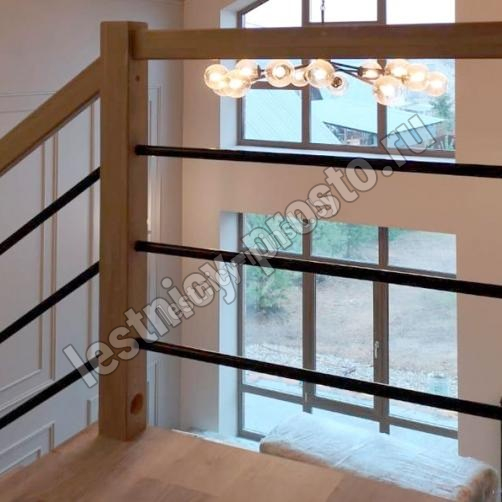 В комплекте: столбы и профильный поручень из бука без какого-либо покрытия, комплект из 3 стальных ригелей (окрашены в цвет каркаса или хром по желанию) диаметром 12 мм. Вы можете заказать у нас предварительную профессиональную покраску деревянных элементов в любой цвет.