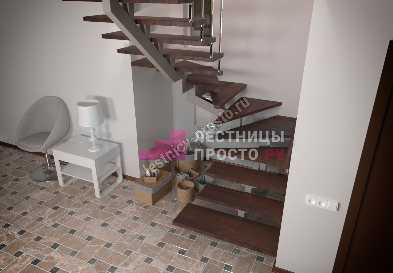 Конструкция представляет собой стальной монокосоур, на который крепятся ступени из выбранной породы дерева.