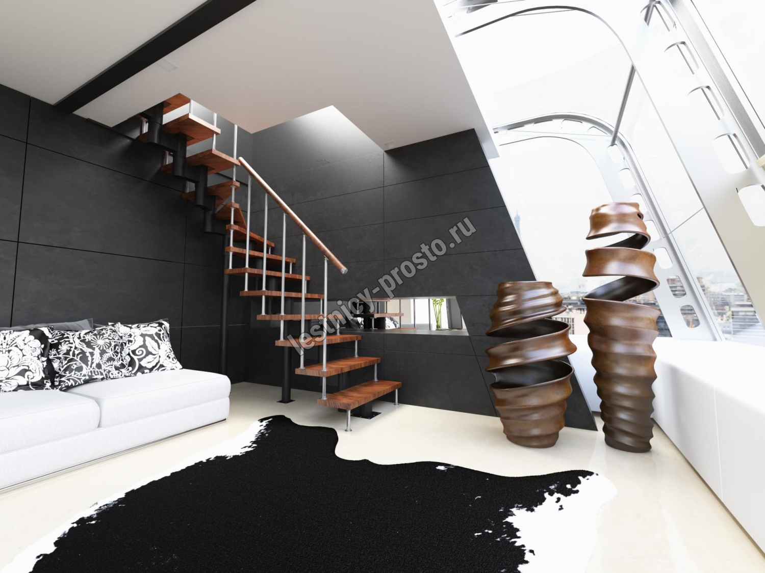Модульная лестница PROSTO MODULE Г-образная, h270, лиственница