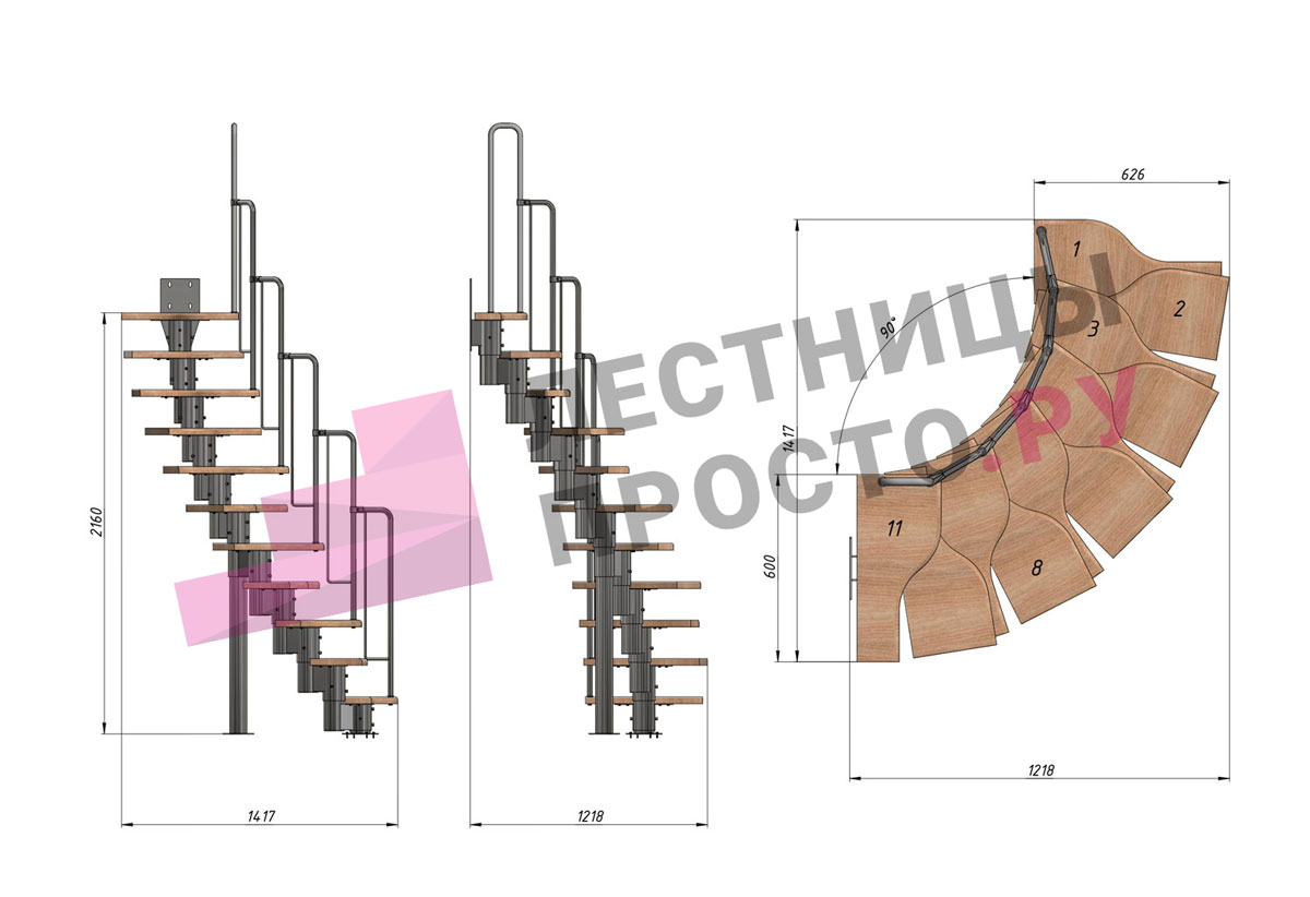 Лестница Prosto Urban Black гусиный шаг 600 мм, h198-288 см (11 ступеней)