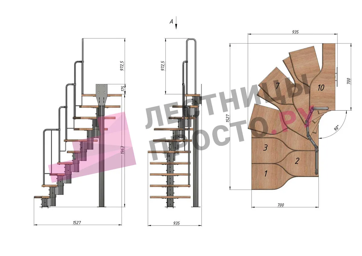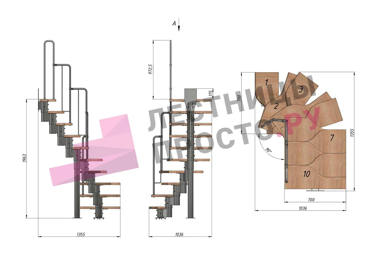 Лестница Prosto Urban White гусиный шаг 700 мм, h180-264 см (10 ступеней) берёза мультиплекс