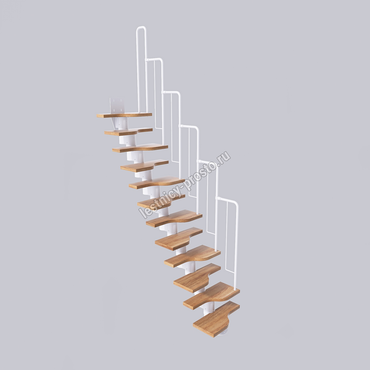 Лестница Prosto Urban White гусиный шаг 700 мм, h198-288 см (11 ступеней), бук