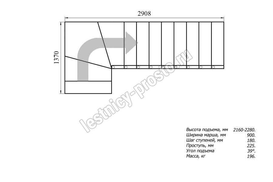 Модульная лестница Фаворит 180 2160-2280, Серый, Сосна, Нержавеющая сталь