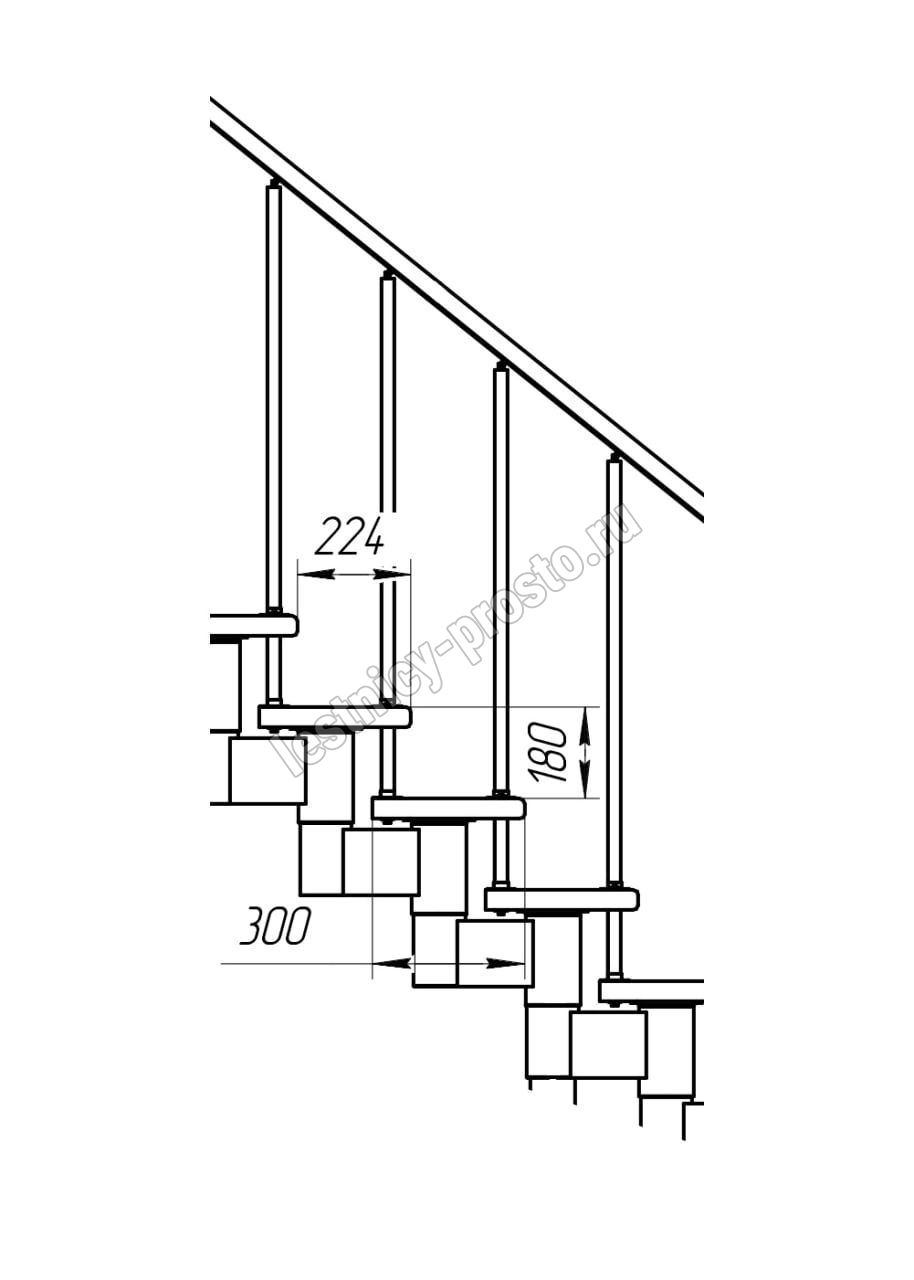 Модульная лестница Фаворит 180 2880-3040, Серый, Сосна, Крашеная
