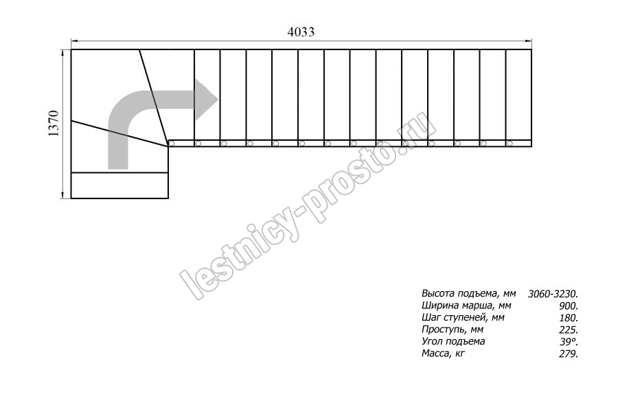Модульная лестница Фаворит 180 3060-3230, Белый, Лиственница, Нержавеющая сталь
