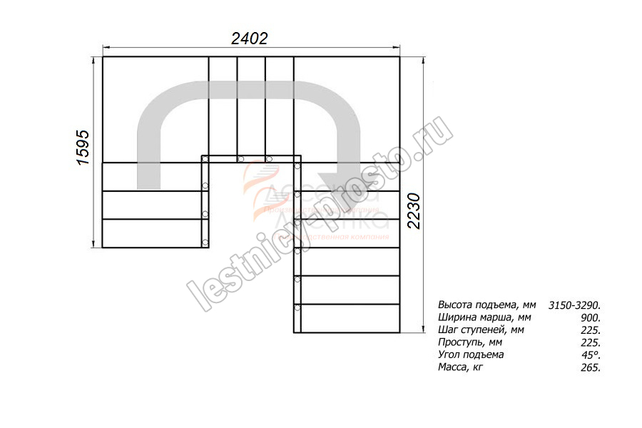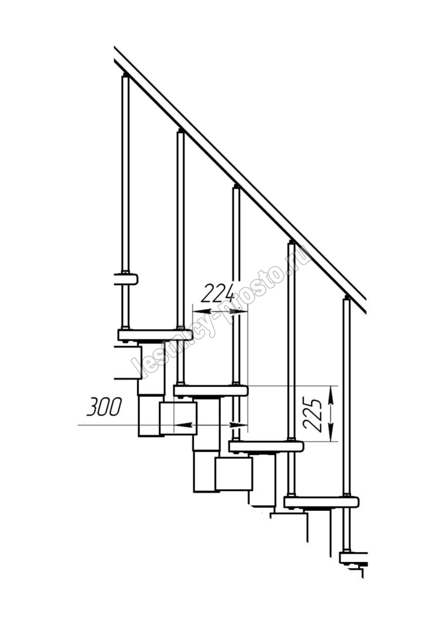 Модульная лестница Комфорт 225 3150-3290, Белый, Бук, Нержавеющая сталь