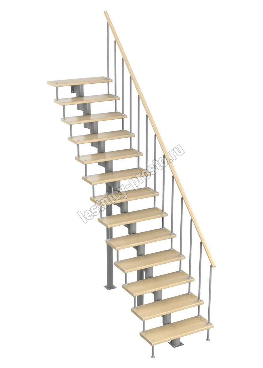 Модульная лестница Стандарт 3150-3290, Серый, Бук, Нержавеющая сталь