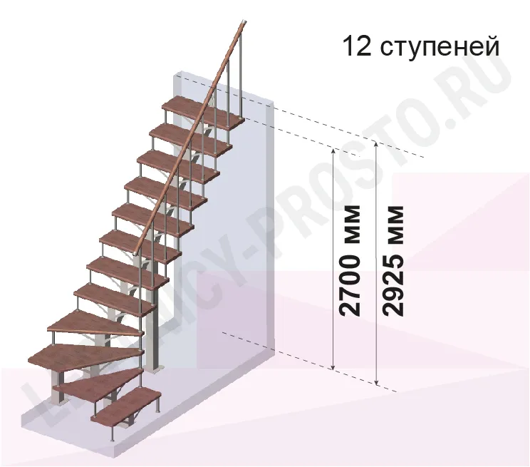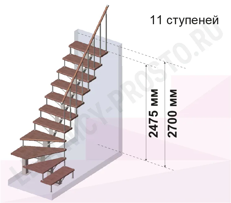 Лестница PROSTO MONO Г-образная h270 см, ступени хвоя |