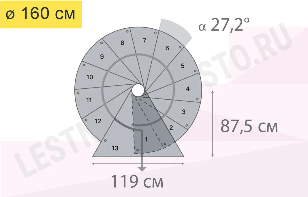 При монтаже лестницы, с помощью специальных пластиковых вставок, варьируется высота шага в пределах от 210 мм до 235 мм, за счёт чего общая высота лестницы может быть получена в пределах ;от 2530 мм до 3060 мм.