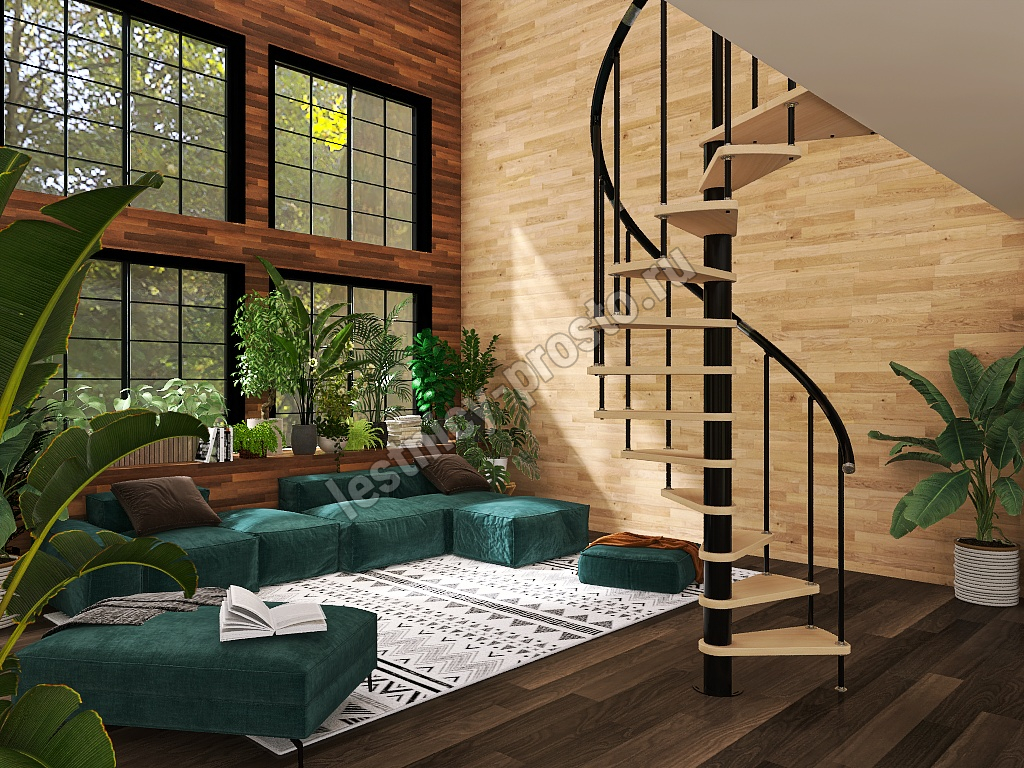 Винтовая лестница Prosto Spiral Black D120см, h303.9-348,1 см, бук