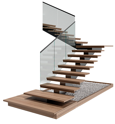Облицовка лестницы из бетона с дизайнерским ограждением LP-1-13