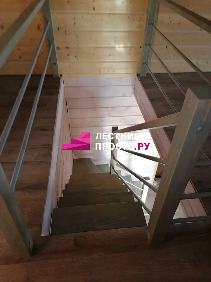 Металлическая лестница с сосновыми ступенями LP-3264